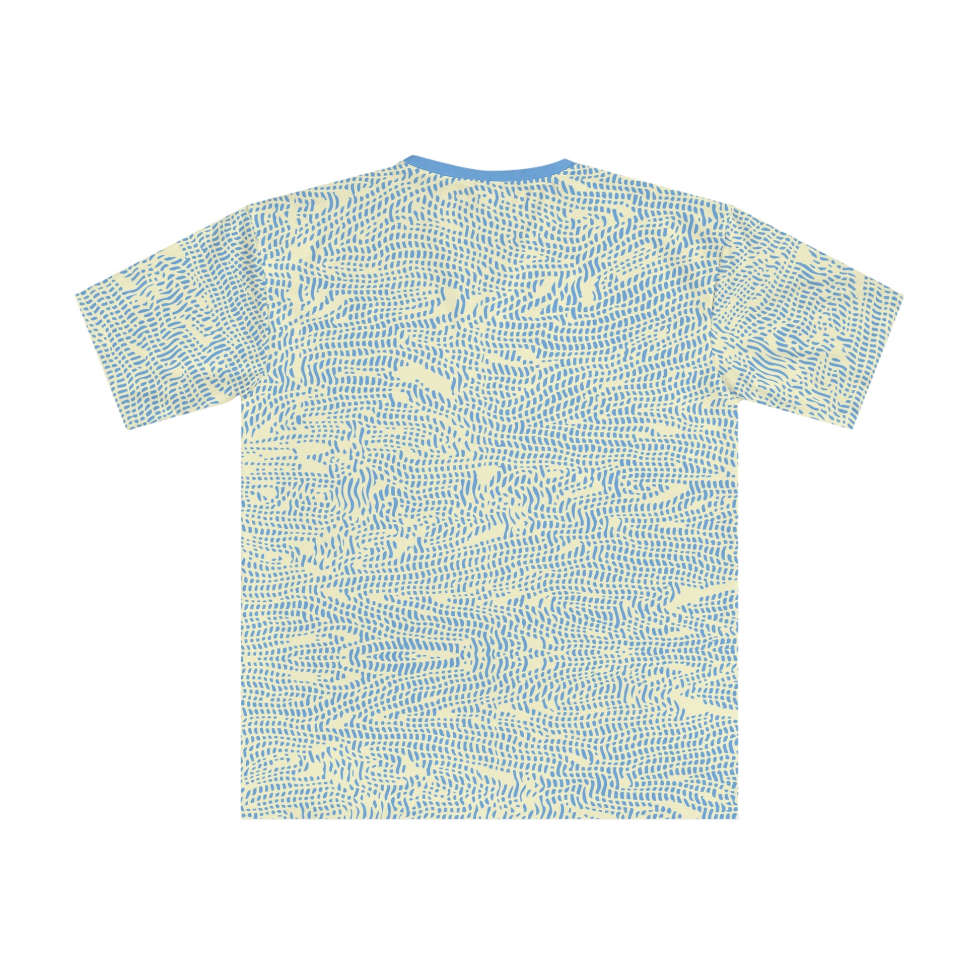 A comfortable T-shirt with a swirling cool design of cream and aqua. Perfect for casual outings or lounging at home, adding a touch of style to your everyday wardrobe. Ideal for men who appreciate unique designs and want to stand out. Great for summer events, beach days, or music festivals.